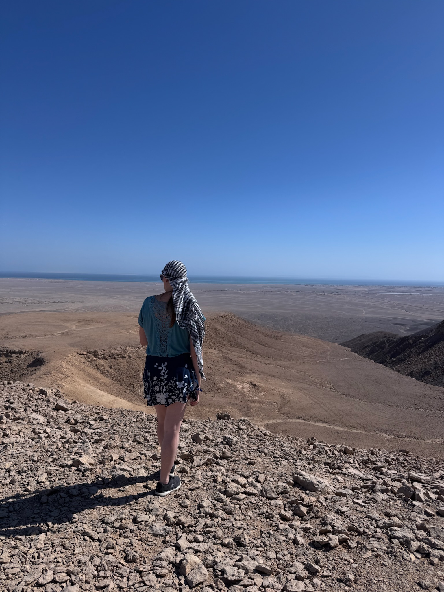 Een paar dagen later kozen we voor iets helemaal anders: een buggytour in de woestijn. En ja, ik zat zelf achter het stuur. Het gezicht van onze Egyptische gids toen hij hoorde dat ik ging rijden, was onbetaalbaar. Gelukkig had hij al snel door dat ik niet bang was van wat snelheid, en algauw trok hij het tempo op. We reden over zandduinen, tussen de bergen door, met alleen het geluid van de motor en de wind. De zon zakte langzaam achter de horizon en kleurde de woestijn oranje en goud. Het was een van die momenten waarop alles klopt: avontuur, vrijheid en stilte tegelijk.