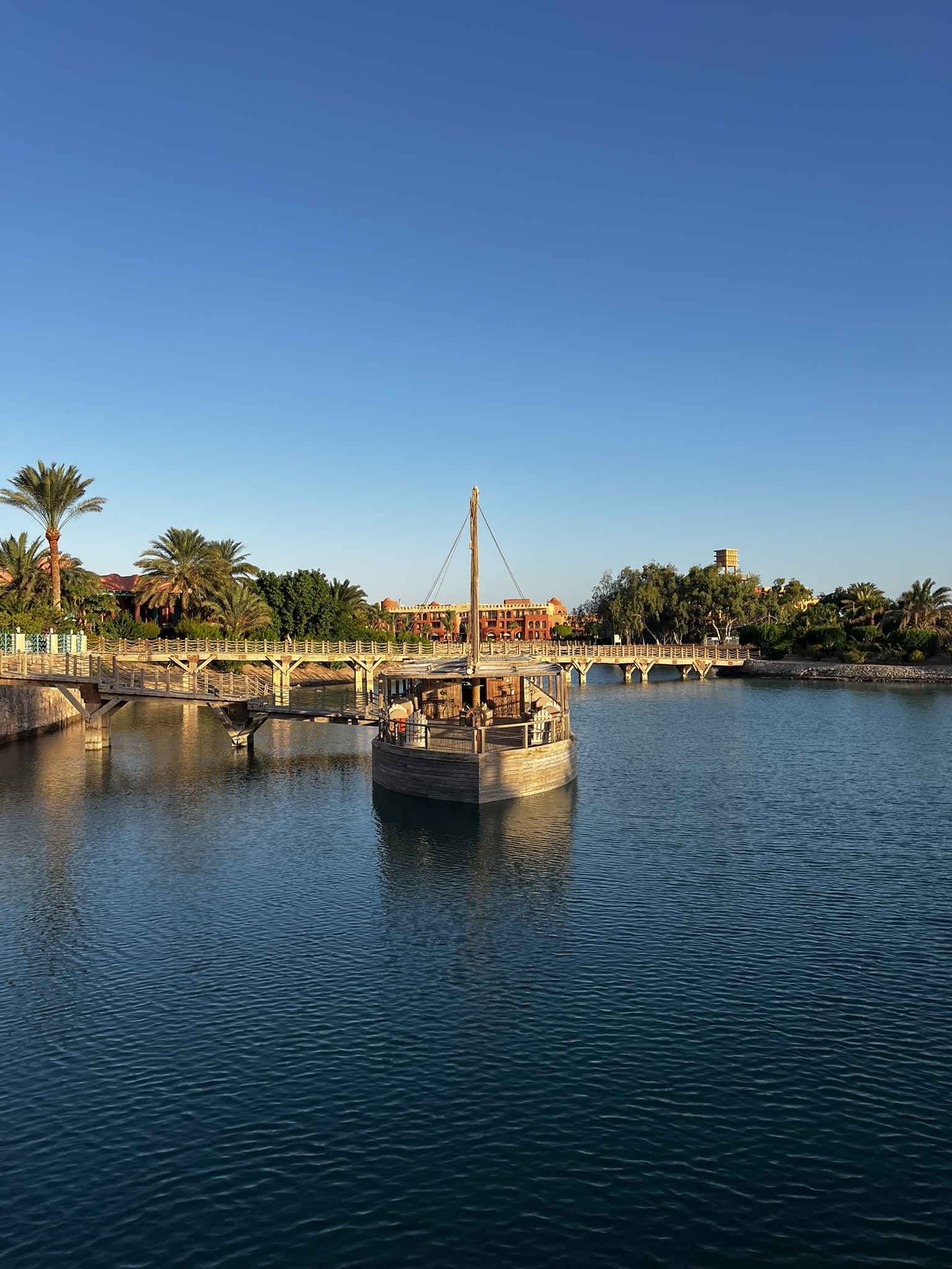Wat El Gouna echt uniek maakt, is de opbouw van de stad zelf. Alles draait om het water. De lagunes, de bruggetjes en de bootjes die overal zacht voorbijglijden geven een bijna eilandachtig gevoel. Je vergeet soms dat dit één groot vakantieresort is.